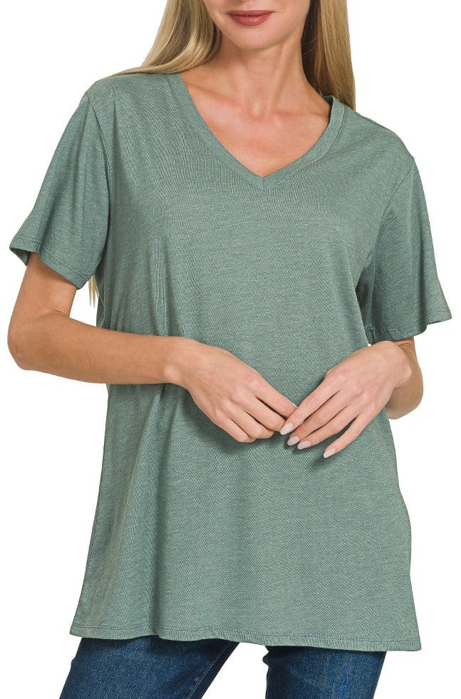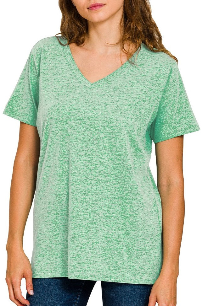 Relaxed Fit Basic Tee Shirt Ash Jade, Green, White